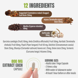Cholesterol Health – Ayurvedic Herbal Supplement – 90 Vege Capsules – 800 Mg Each