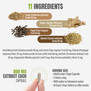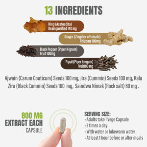 Hingwastika Capsules – Ayurvedic Herbal Supplement – 60 Vege Capsules – 800 Mg Each