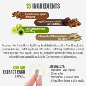 Heart Health Capsules – Ayurvedic Herbal Supplement – 90 Vege Capsules – 800 Mg Each