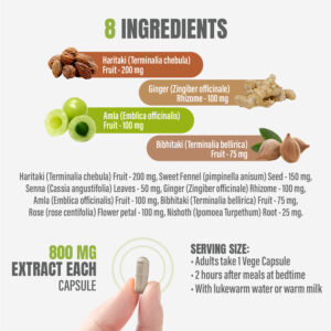 Triphala Capsules – Ayurvedic Herbal Supplement – 60 Vege Capsules – 800 Mg Each