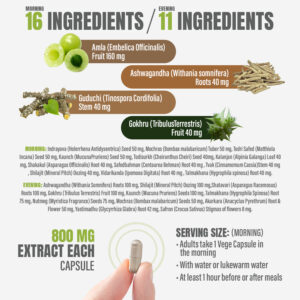 Vigor Forte Capsules – Ayurvedic Herbal Supplement – Combination Pack (2 Bottles) Morning Strength: 42 Capsules, 800 mg each & Evening Strength 42 Veg Capsules, 800 mg each